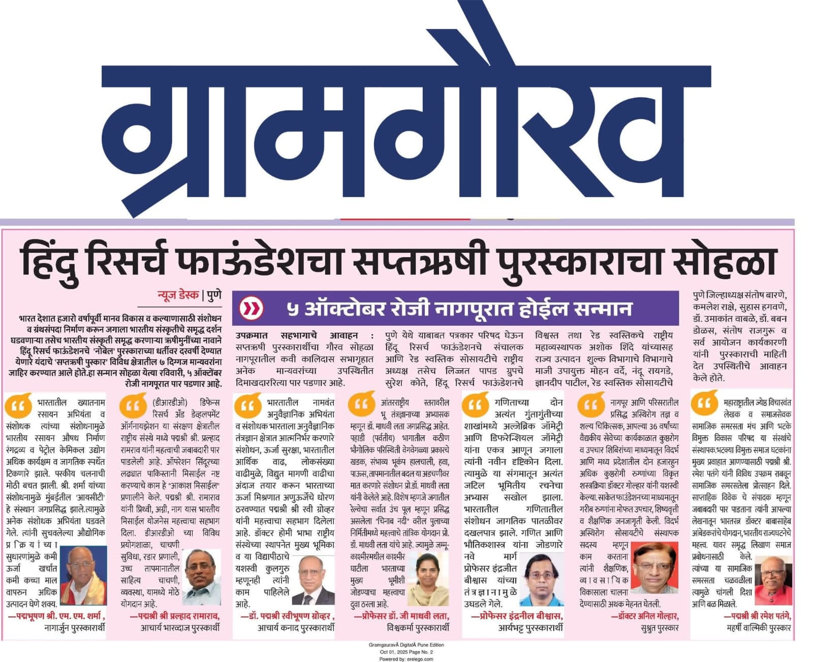 Saptarshi Puraskar Shrunkhala 2022